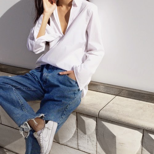 There's something so timeless, fresh and clean about white shirts and denim. Summer is all about easy and minimal outfits so a classic white shirt and dark blue jeans is ideal. Even if you don't pair your jeans with a white shirt, a denim shirt works as well. All we need is a nice tan and we're set! Here are a few pictures that inspire us to recreate these looks.